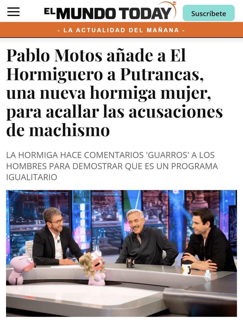 Sin categoríaPutrancas la nueva hormiga de «El hormiguero»Por ultracab -140FacebookTwitterPinterestWhatsApp @elmundotoday